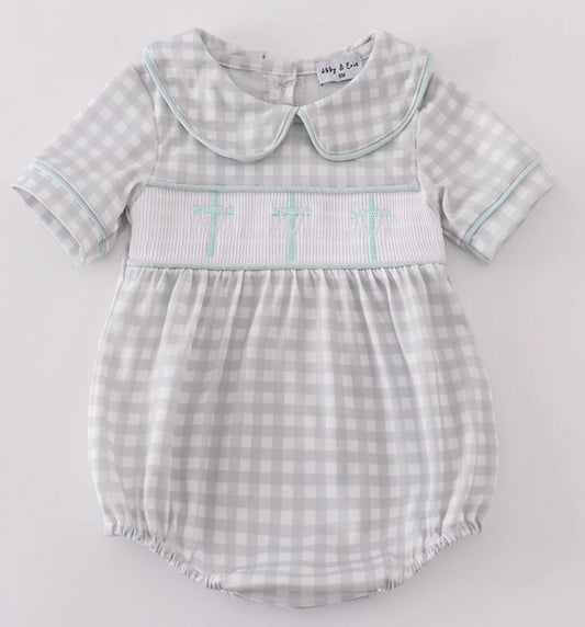 Smocked cross collar boys set