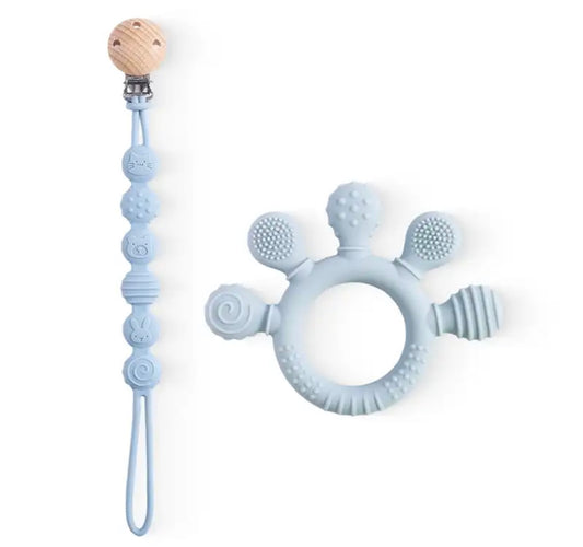 Newborn gift set- pacifier clip, teething ring, teething towel