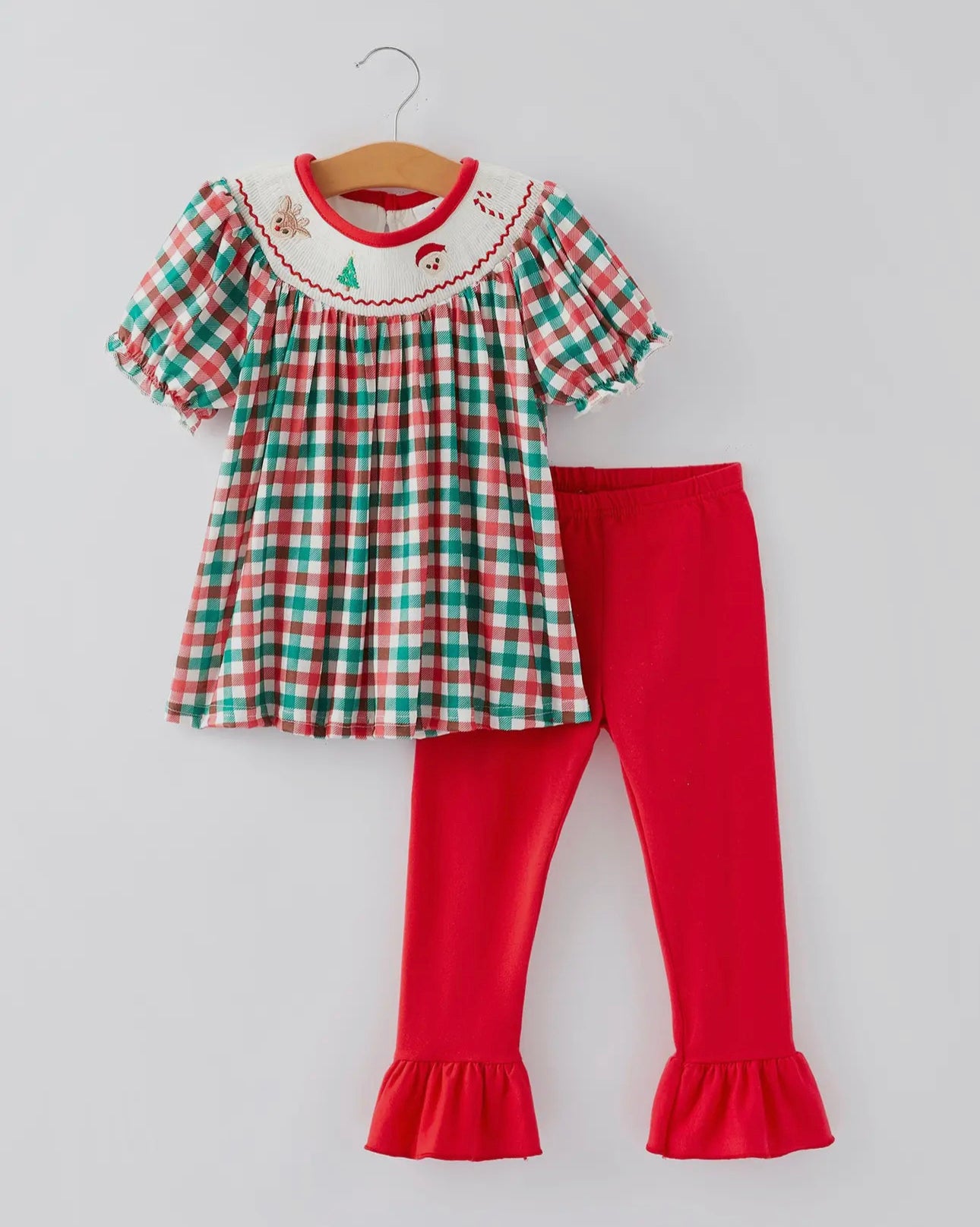 Christmas plaid smocked girls set