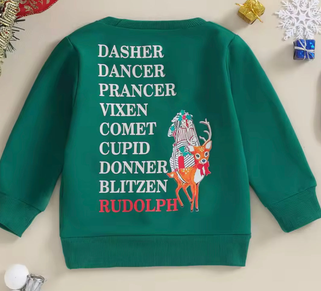 Dasher, dancer, prancer green pullover