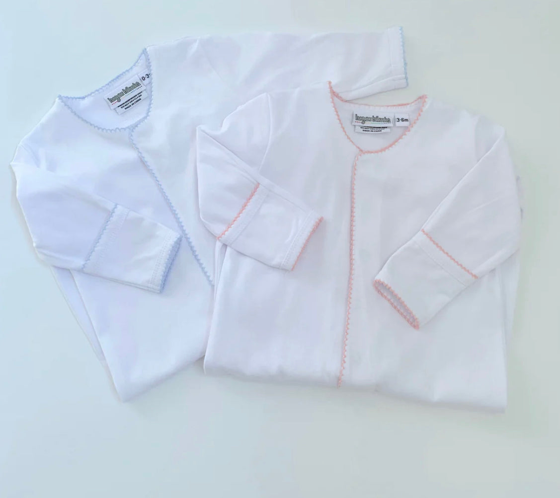 Picot trim footie- pink or blue with hat