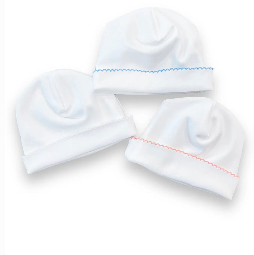 Picot trimmed hat (matches the footies - EMBROIDERED