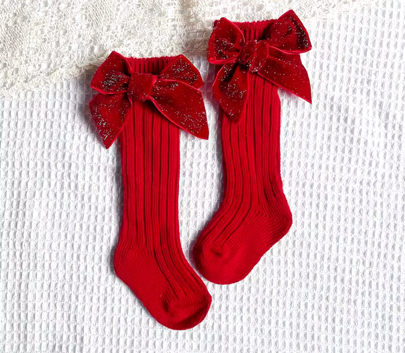 Red Sparkle Bow Knee Socks