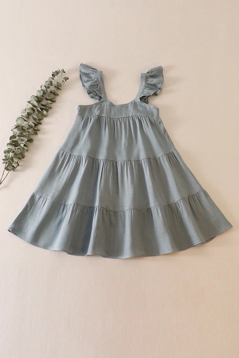 Teal tiered ruffle linen dress